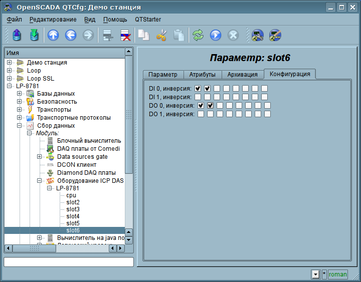 Для модулей дискретного входа и выхода, во вкладке "Конфигурация" (рис.7), предоставляется функция выборочной инверсии канала, что очень удобно при последующей работе с каналом.