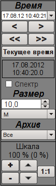 Для масштабирования и перемещения графика по оси времени необходимо вызвать панель управления графиком. Вызов панели управления осуществляется нажатием левой кнопки манипулятора «мышь» в любой области графика.