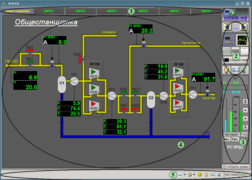 Данный документ предназначен для применения в дополнении к "Динамической модели реального времени Анастасиевской ГЛКС (ДемоБД)" с целью наглядно описать типовой интерфейс визуализации и управления оператора в OpenSCADA.