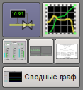 | | Кнопка вызова в рабочую область видеокадра окна сводных графиков. Данный вид отображения не закрепляется за конкретным объектом сигнализации, а доступен для интерфейса в целом! |