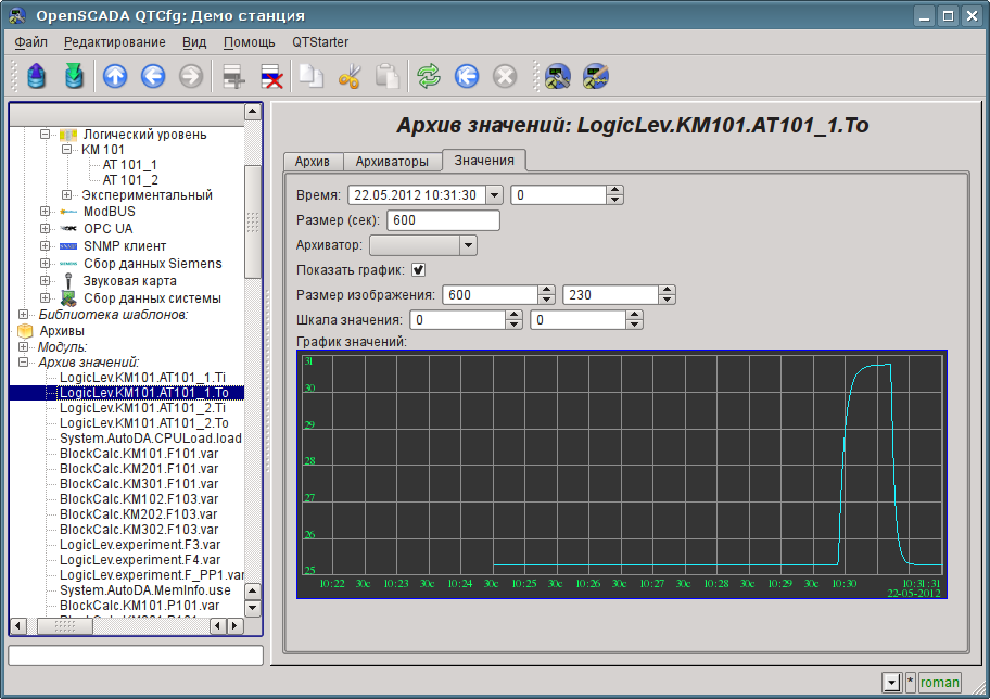 | 2012-05-22 10:33:05 | (120 Kb) | Вкладка "Значения" страницы объекта архива атрибута "Ti" параметра AT101_1. | ||