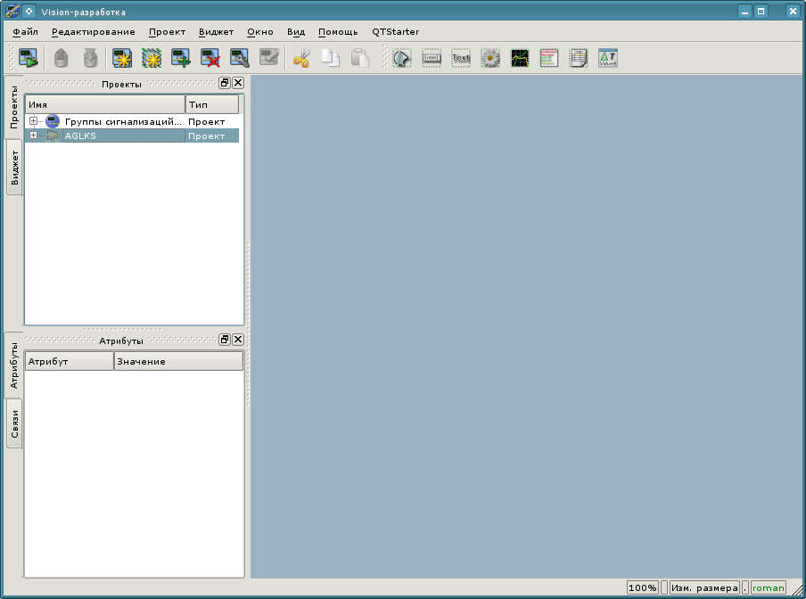 Для запуска чистого пользовательского проекта в меню окружения рабочего стола, разделе "Графика", предусмотрен пункт "Открытая SCADA система" с характерной иконкой (рис.3.1.1).