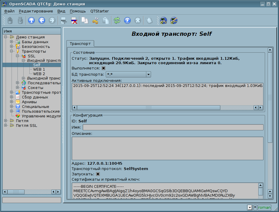 Добавить новые входящие и исходящие транспорты можно посредством конфигурации транспортной подсистемы в любом конфигураторе системы OpenSCADA.