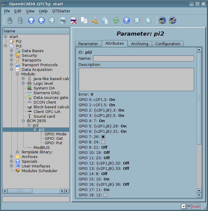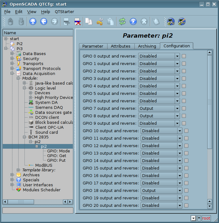 Tab "Attributes" for the GPIO is shown in Figure 3. For the GPIO there is accessed also "Configuration" tab (Fig.4) with IO mode and reverse state.