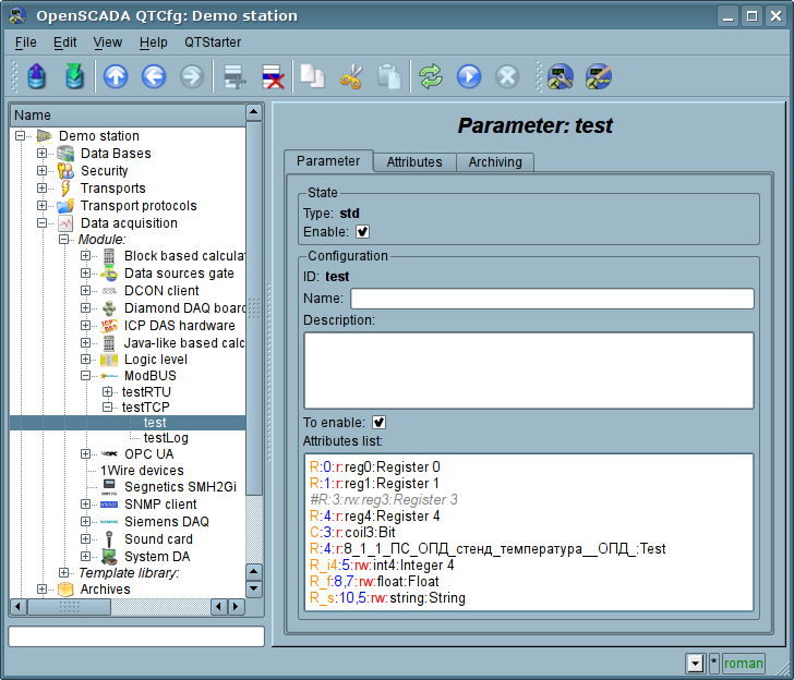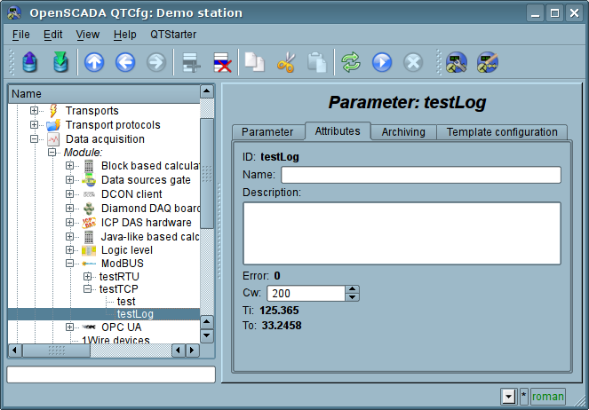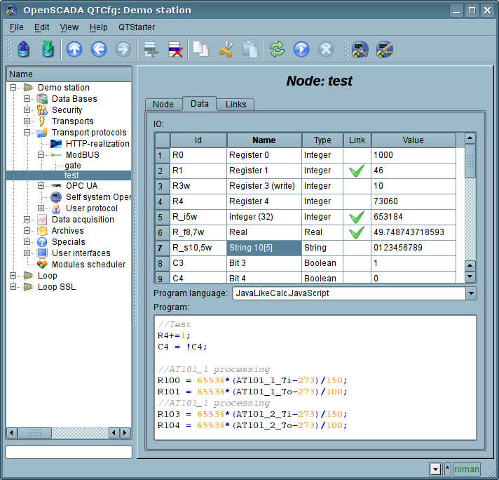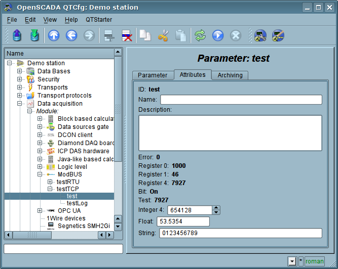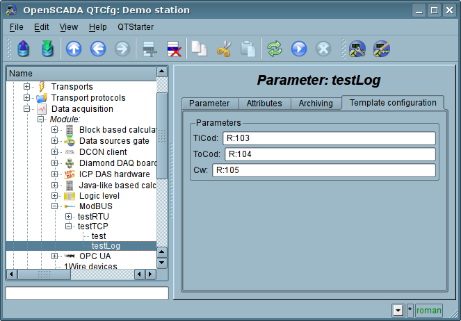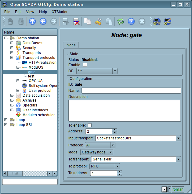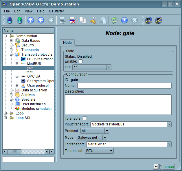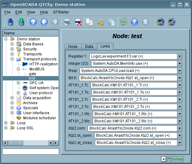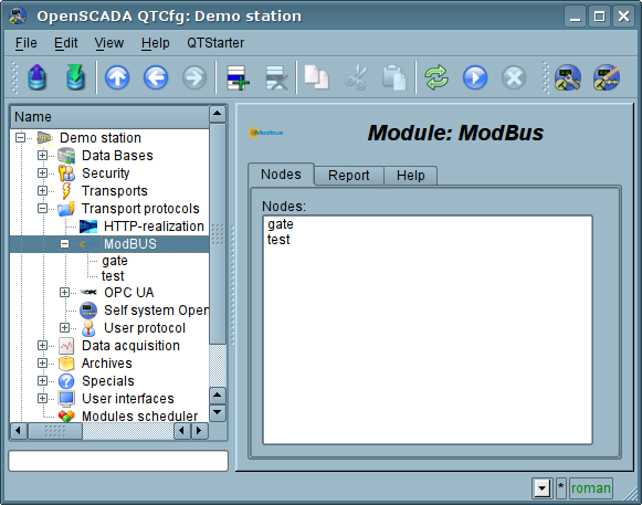 Since the protocol nodes can be created a great number, it turns out that on the one interface, ie in the one network, one station on the basis of OpenSCADA can clear provide multiple nodes of ModBus network with different data.