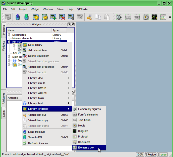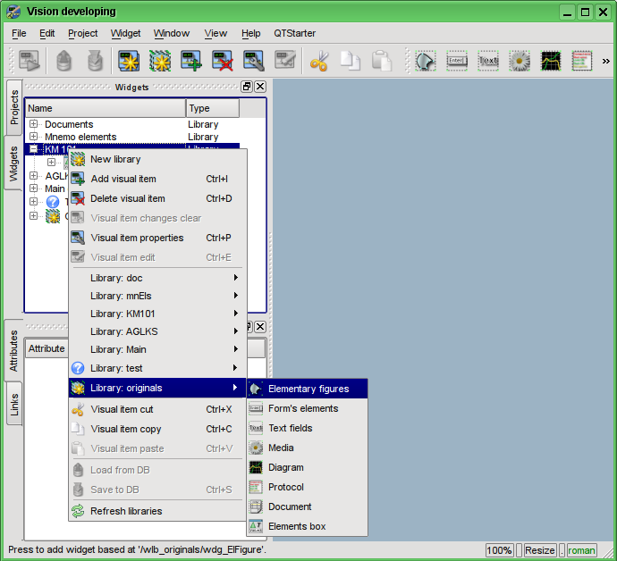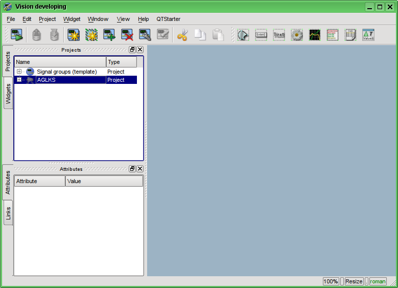 After the addition of OpenSCADA libraries you'll get an environment ready for addition of data sources and the formation of the new SCADA-system project's interface.