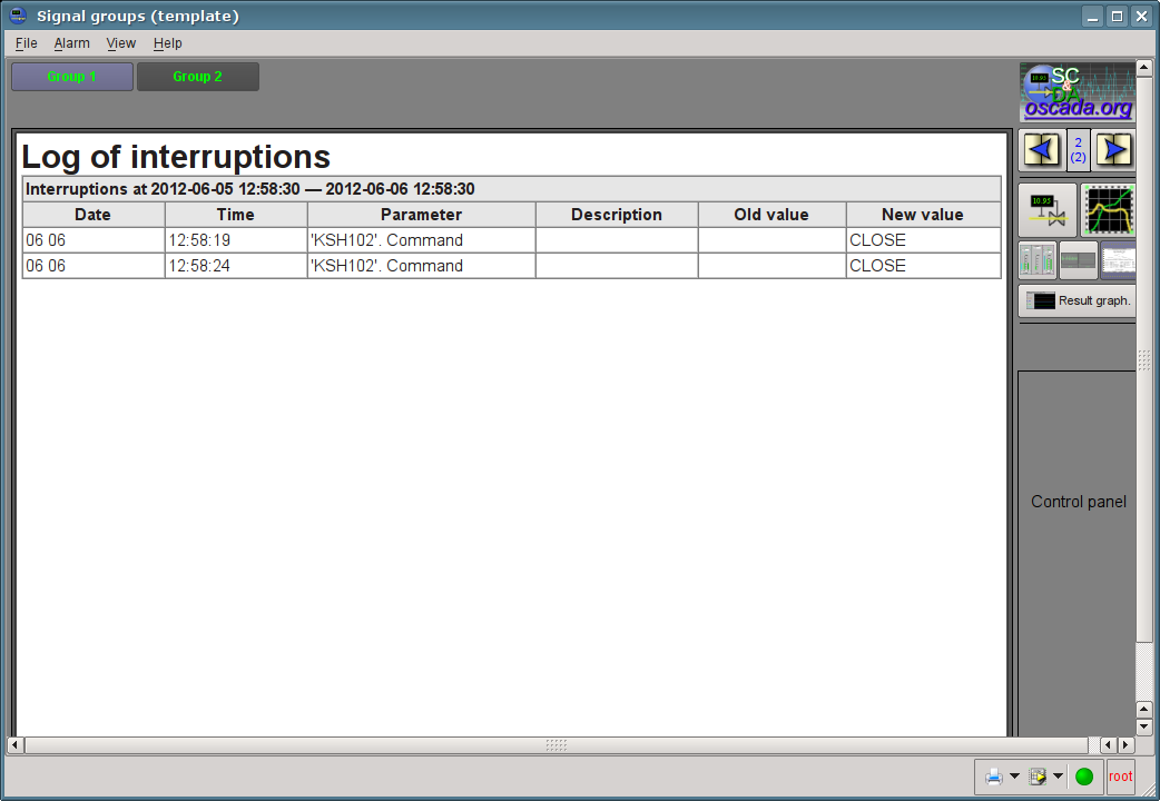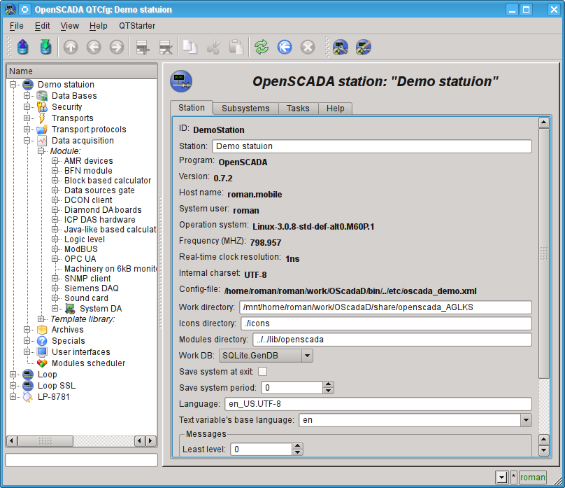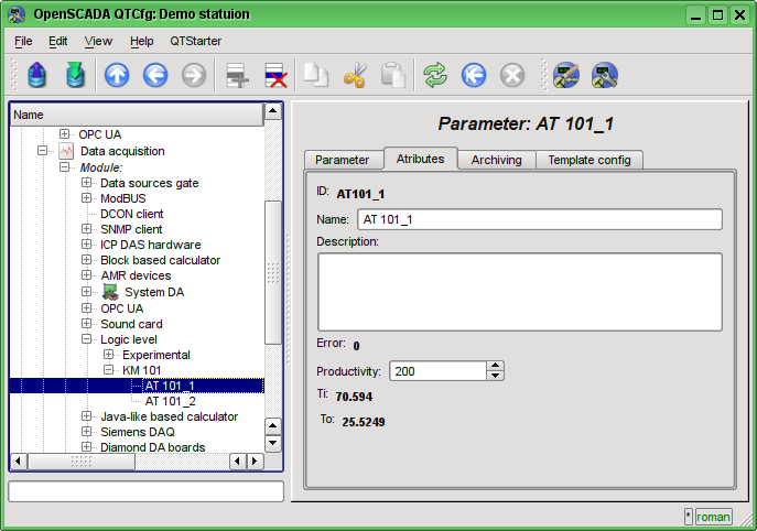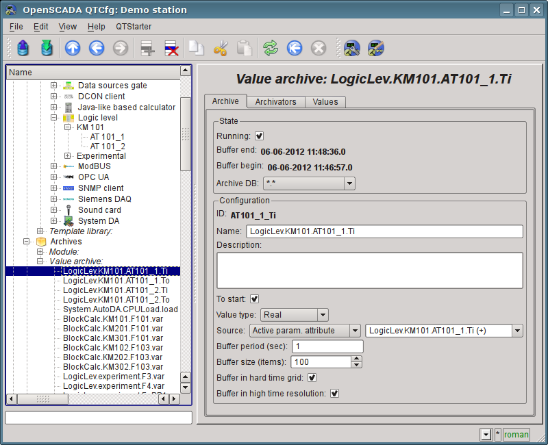 So we ran the demonstration of OpenSCADA and familiarized with the main set of tools. In the future we will use them for configuration of OpenSCADA, creating the tasks of data acquisition, binding the collected data with the purpose of their processing and making the impacts, as well as to create the visualization user interface of the received data and to make the control actions.