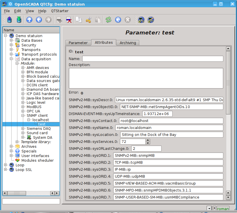 In accordance with a specified list of MIB-parameters is carried out a survey of their branches (or scalars) and the creation of the attributes of the parameter. Further, updating of the values of parameters is carried out. Attributes are named in accordance with the code addressing of MIB-parameters, as the ID, and the addressing from the base of MIB objects in the name of the attribute(Figure 3).