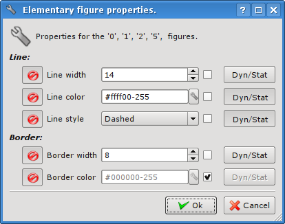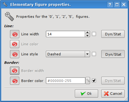 As can be seen from the figures above, the dialog can be of three different forms, depending on the object for which it is called. In the title of the dialog there are the numbers of figures, for which it is called. These numbers correspond to the positions of figures in the "Elements' list", starting from the top.