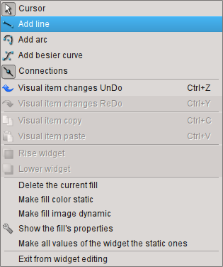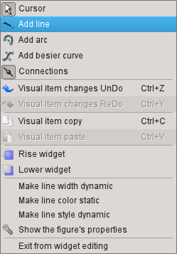The popup menu by the right-clicking in the editable widget is provided. Depending on what an object is under the mouse popup menu can take several different forms. Below, in Figure 5.4, there are examples of the popup menu.