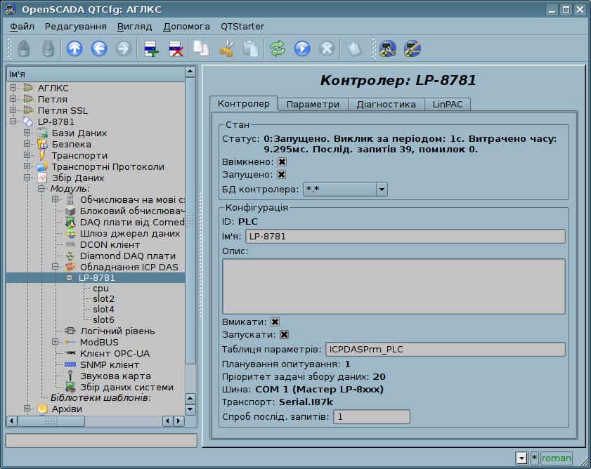 Причиною створення цього модуля стали роботи з контролером фірми "ICP DAS" LP-8781 серії "LinPAC" з метою реалізації середовища виконання ПЛК на основі системи OpenSCADA.