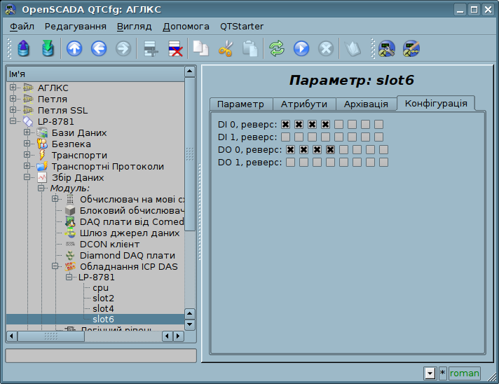 Для модулів дискретного входу та виходу, у вкладці "Конфігурація" (рис.7), надається функція вибіркової інверсії каналу, що дуже зручно при подальшій роботі з каналом.