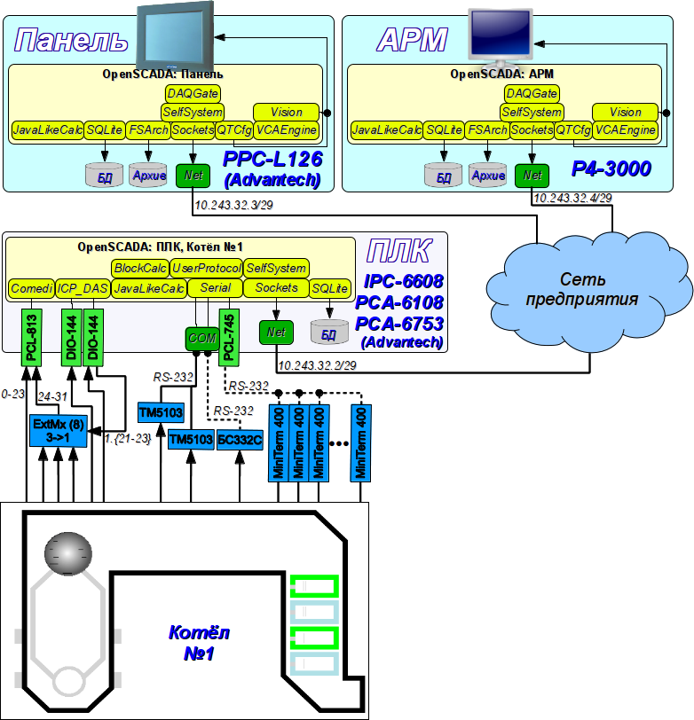 Конфигурация и БД проекта визуализации OpenSCADA на АРМ-оператора и панельном ПК идентичны.