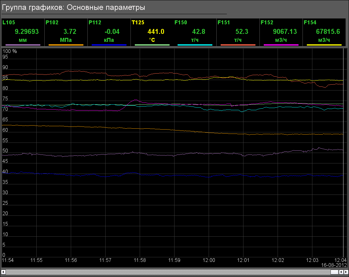 На экранах дисплеев оператора, при помощи программы отображения, выводятся: