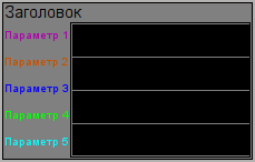 pName Имя параметра Строка Входная связь Parametr|NAME Короткое наименование параметра, отображаемое над значением.