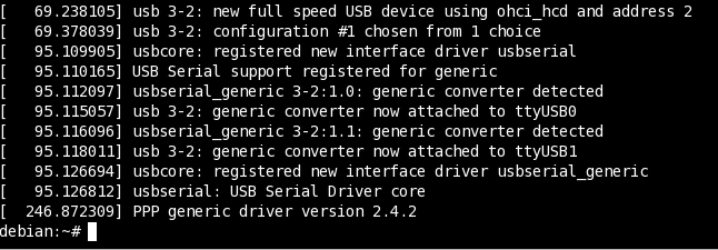 Наблюдаем успешное поднятие usbserial с нашим модемом на ttyUSB0