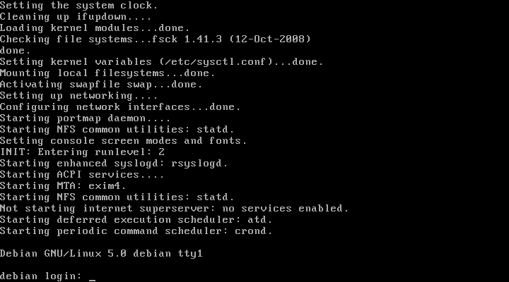 А вот тут останавливаемся. Ядро Debian по умолчанию не загрузилось, увидим только Kernel panic. Ядро должно быть немного подпилено патчами от Vortex.